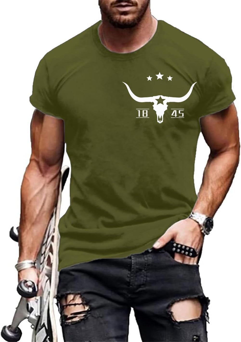 CHECK PRICE ON AMAZON →HOTYD Western Bull Horn Print T-Shirt